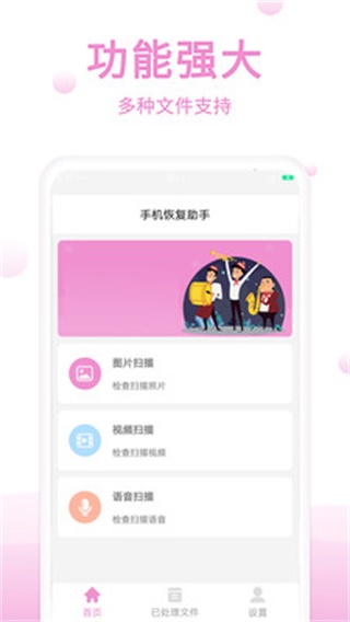 手机恢复数据恢复是款简单方便的备份工具。开启之后我们就能快速获取到我们的文件并选择适合自己的功能和帮助用户们完成相关工作内容,想要试试本款软件的朋友不妨速速下载吧!