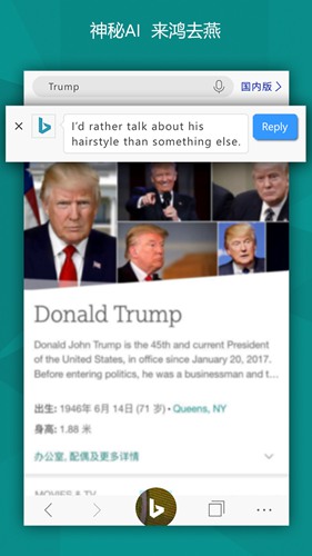 微软必应国内版是一款非常实用的手机搜索软件,该平台由Microsoft公司推出,为用户提供更加便捷高效的生活体验。这款软件采用了先进的搜索引擎技术和先进的网络传输技术,致力于为广大用户的上网浏览带来更加流畅且舒适的网页环境。它不仅提供了强大的搜索引擎功能、安全可靠的信息保护措施以及丰富的生活服务选项,还支持个性化推荐与语音导航等特色功能模块,使用户能够在享受优质内容的同时又能获取最新资讯信息或了解周边动态变化。