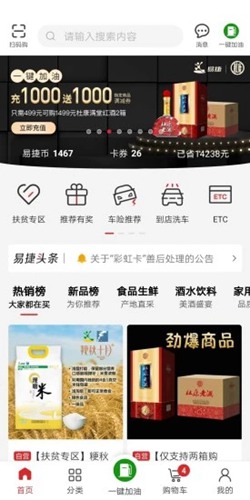 易捷加油为客户提供一键式加油优惠及增值服务;以“加油省钱、生活更方便”为理念,为客户提供了优质的生活保障和贴心的服务。目前易捷APP涵盖了油品商城、加油卡管理中心、加油卡报销等众多模块内容。