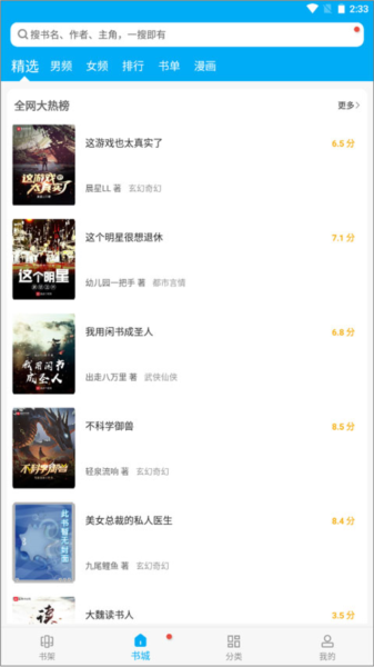 各类小说应有尽有,涵盖玄幻奇幻、武侠仙侠、言情穿越、青春校园、宫斗宅斗,原创热文应有尽有;