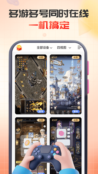 无论何时何地,通过无死角监控您的账号情况,实现游戏7*12h在线。
