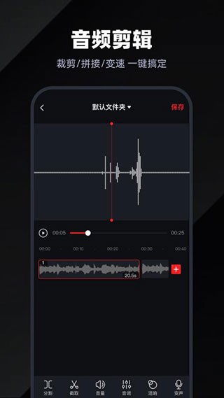 *录制高清录像,支持长时间录制、连续录制、断点续拍录音、音速切换、音效调整,让你更高效完成录音整理。