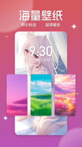 【分类&内容多】情感语录、心灵鸡汤、美女明星、可爱萌宠、文字物语、自然风景、节气节日、情侣壁纸......应有尽有,随时满足你的要求。