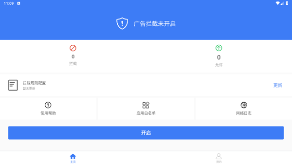 2、进入软件主界面,我们可以看到有许多常用功能如:广告过滤、历史记录清理、通知栏阻止等等,