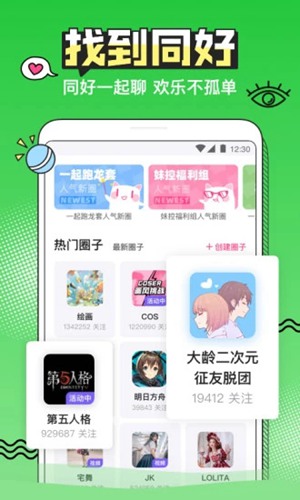 二次元爱好的福音:二次元创作者聚集地,二次元文化交流平台。海量的同人图文,二次元周边任你选!更有各类cos大神入驻,手把手教你宅腐基~