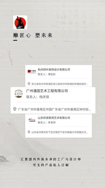 ●专业雕技,匠人之手:全国展厅,雕牌大师。雕塑行业,一网打尽。【雕塑大师】来自全国各地的手办艺术家、名品店主,他们拥有着丰富而专业的雕工艺,为你带来精美的纹理、细节呈现。我们不仅仅是篆刻家的珍藏,更是雕石爱好者们追求品质生活的聚集地。