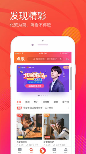 1、【海量伴奏】新潮的热门歌曲全收录,你想唱的这里都有。2、【趣味互动】用私信表达爱豆,一起交流互动,还能自己当主宰呢?3、【精彩视频】全新MV模式,全屏大图清晰唱出来啦!4、【酷炫特效】酷炫的动态特效让你的视频更加动听哦~5、【好友擂台】加入家族系统,看看谁才是卧底哟!6、【交友小游戏】好玩的斗歌玩法,多人互动玩出花样