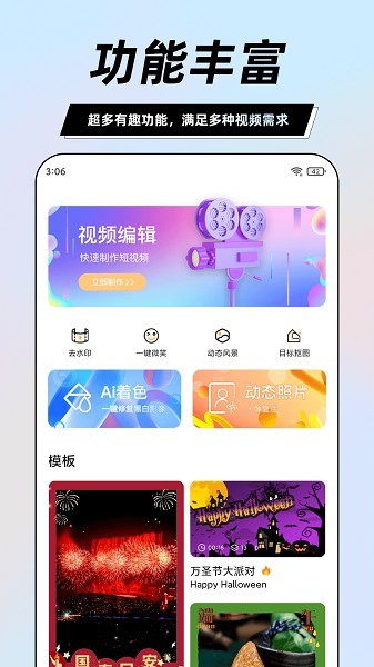 一键视频剪辑大师是武汉市信鱼公司推出的一款手机视频编辑剪辑软件,这款软件为用户提供了丰富的功能可以进行使用,同时还拥有超多的素材模板以及特效、字幕等工具帮助你快速制作出想要的视频哦,需要的快来西西下载吧!