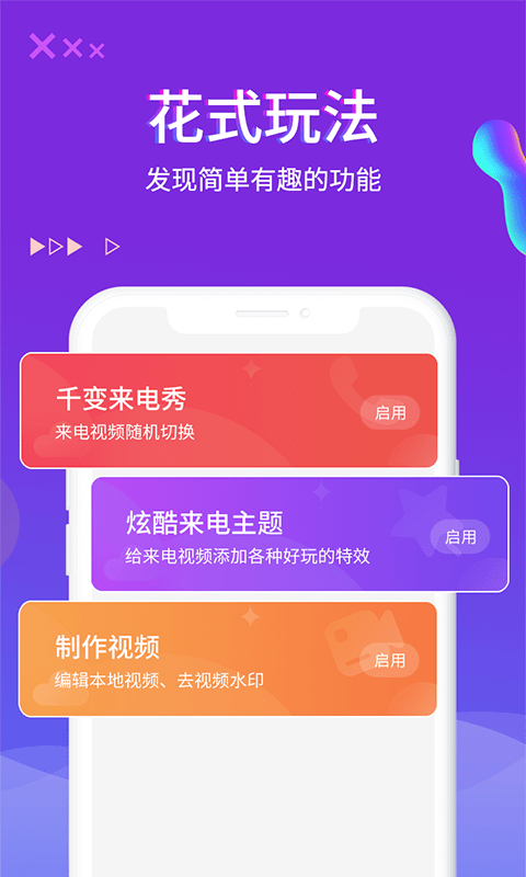 1、丰富多彩的视频分类系统方便快捷查找自己喜爱的内容。2、丰富的免费模式让用户的通话更加的炫目动人,感受更多乐趣。3、一键更换即可设定成来电动画效果十分不错,给你带来更好的互动享受。4、为广大用户们带来了优质的服务玩法信息查看服务随时了解最新消息状态情况。5、每日实时上新百万来电提醒任你选用打造不一样的来电提示音效搭配不同的方式展示给大家获取更多的快乐。6、精选了最热歌曲库智能搜索网络流行金曲任意换取喜欢的歌曲当做来电铃声。