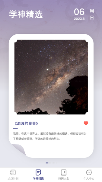 点点学神是款实用的古诗词学习软件,它可以帮助我们快速记忆和背诵唐诗,这里有丰富的音频资源可供选择。它的界面简洁明了,使用起来非常方便。
