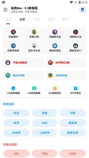 1、一款完全免费的画质优化器,这款工具箱拥有大量的画质代码库,
