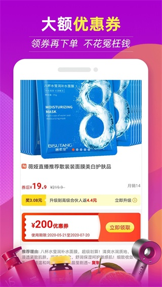 每天更新上万张内部优惠券,限量领,享高至9块14包邮,每日半小时,轻轻松松就能买到实惠商品。