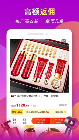 花折返利特价版是专门为消费者提供高返利及返佣服务的应用,支持各大电商平台(京东、拼多多、唯品会、苏宁易购)下单前搜索淘宝、天猫、京东、网易考拉等各大平台隐藏优惠券,最高可省90%。