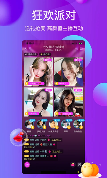 【语音聊天】多种多样声音风格随心切换:纯正美音、甜蜜表白、搞怪恶搞、逗逼幽默等应有尽有,更有颜值主播在线互动。