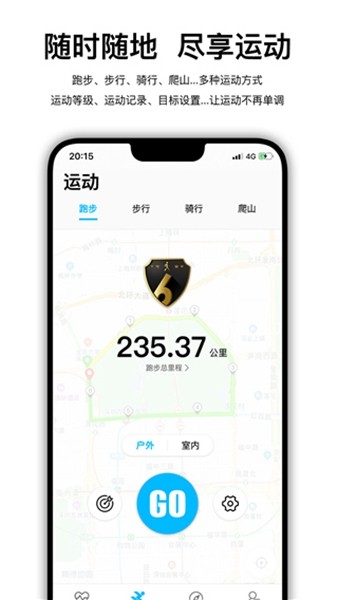 15、【数据统计:周、月历史趋势图】展示每一次跑步、走路、步行数据,一目了然。