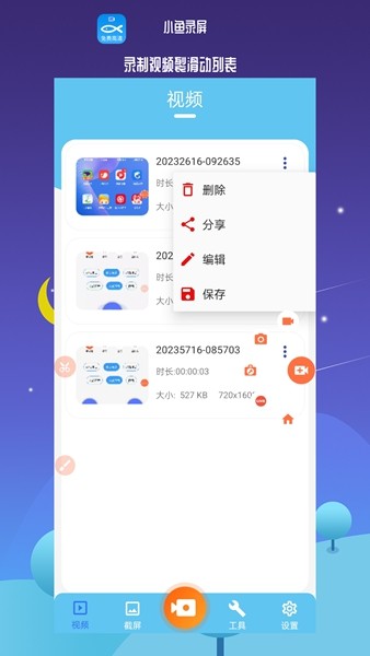 小鱼录屏编辑app是一款手机屏幕录制软件,使用简单方便,拥有视频剪辑功能和图片美化等诸多功能服务。用户可以根据自身需求选择合适的模式进行设置操作!需要的用户赶快来西西下载体验吧.