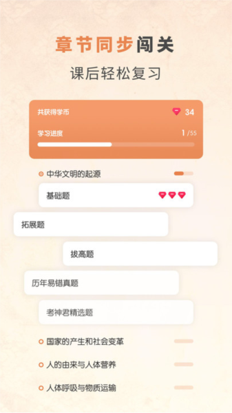 初中历史考霸是专为中小学生而打造的教育类应用软件,这款软件内用户可以随时随地的在线学习各种历史知识点内容等信息哦,还有很多的错题集等等一起来使用,需要的小伙伴赶紧来下载吧~