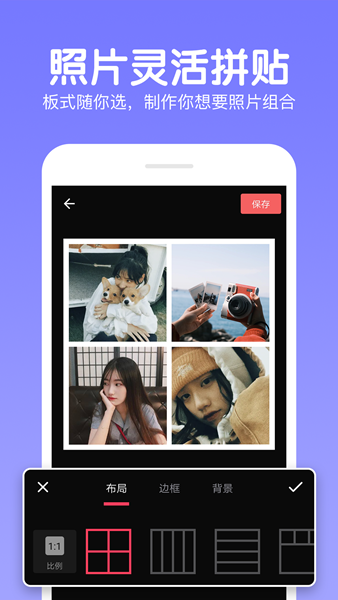 快云P图编辑是款美颜滤镜p图工具是一款可以让用户轻松制作精美的图片特效的美图相机,通过该软件您可以随意选择各种模板、贴纸或滤镜等内容。在这里您还可以快速创建自己的图片风格库,包括复古风、梦幻水印和卡通头像等类型的艺术作品;也可以添加滤光效果以及各种文字装饰等等设置成个性化背景,让你的作品与众不同,成为朋友圈的焦点;同时你还可以一键分享至社交媒体平台,并能直接导出为JPG、PNG格式文件,并且拥有强大的图片剪辑管理及合成系统,能够对照片中的照片进行旋转、缩放、翻转、裁剪、翻转等操作。