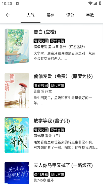 17、【智能榜单】根据千万用户测评数据帮你发现最好看的小说与时下优秀原创小说及专题: