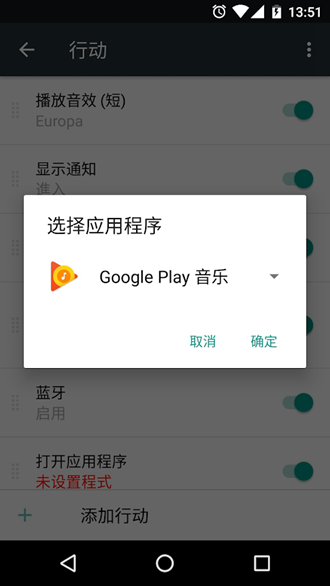 用户可以选择执行某个动作,例如自动打开相机、拍照等等。