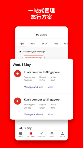 飞行过程中所有订单均可使用Air旅客获取最新的航班状态及优惠信息。