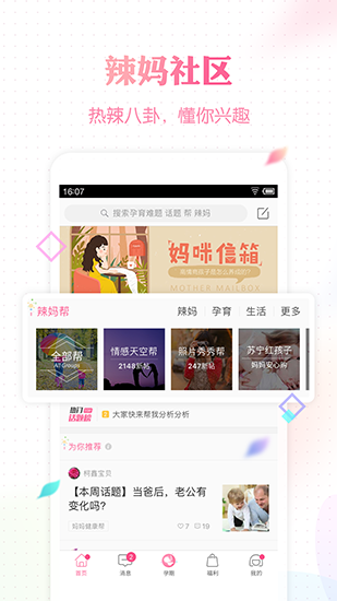 【辣妈帮】汇集千万宝贵的孕妇、儿童、家长都在使用的孕检助手,包含饮食、护理、疾病预防、运动、洗护等多个领域,解决孕前、孕后所有痛点。