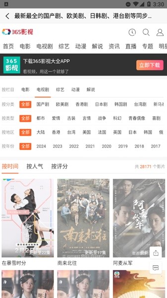 365影视app为广大喜欢看电视剧的用户提供一个便捷的服务平台;在这里你想看的视频都可以通过这个应用直接免费播放到你的手机上哟。