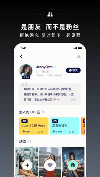 基于LBS定位系统智能推荐附近的人,快速发现身边兴趣相投的人。