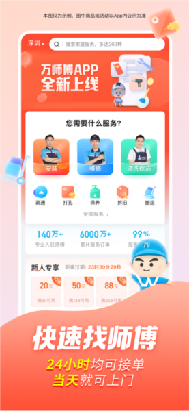 万师傅维修平台上门安装服务平台app是由上海百佳信息技术有限公司精心打造而成的生活类服务软件。用户可以在线进行各类生活家居建材的线上购物,一键下单快速配送至家门口!有需要的用户欢迎来绿色资源网下载体验哦!