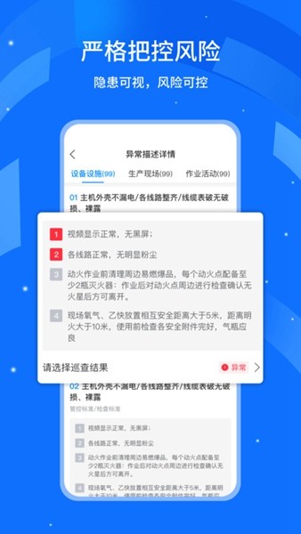 对设备运行状况的即时查询统计工作安排完成任务提醒(包括任务执行、故障报修、检查单审核、作业批注);对相关设备的隐患排查评估反馈操作指导意见及时给予反馈。