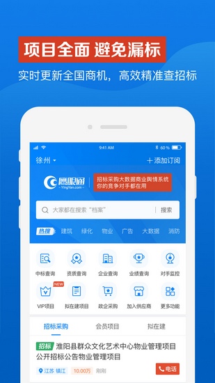 鹰眼通app是一款非常实用的手机招标采购平台,软件功能非常强大。软件中拥有海量的招标信息内容供用户进行查看学习和了解;而且还可以在软件内查询到全国范围内的招标项目情况等详情服务哦!有需要的用户赶快来下载使用吧!