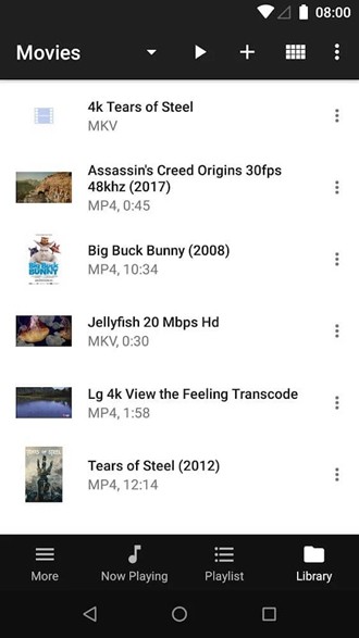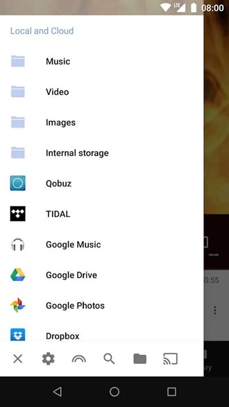*将不同的资源合并在一起,并在一个界面中观看所有媒体文件。在同一屏幕之间切换,然后按菜单键拖动,以使它更容易。您也可以打开播放列表,查看正在播放的媒体文件。