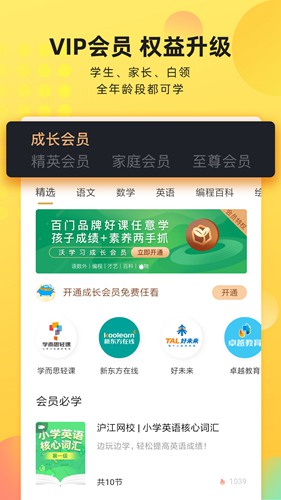 1、全科目辅导:语数英三大主科,百余种学科服务让你畅享高效辅导