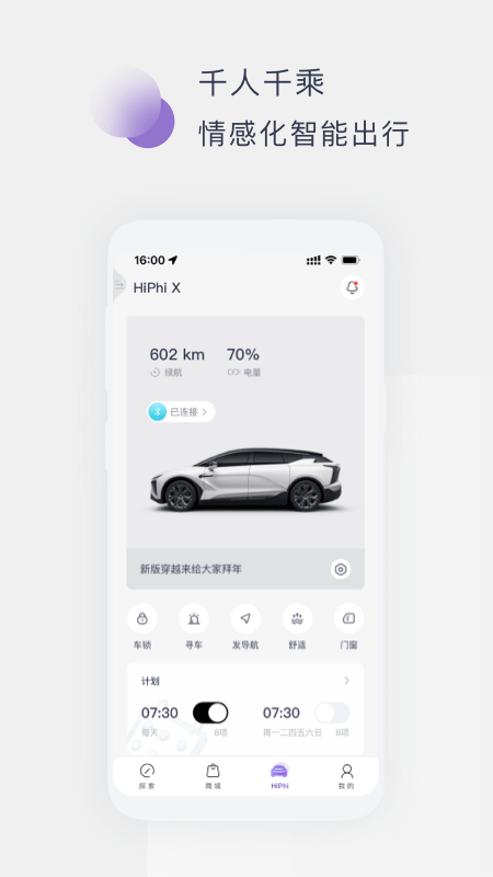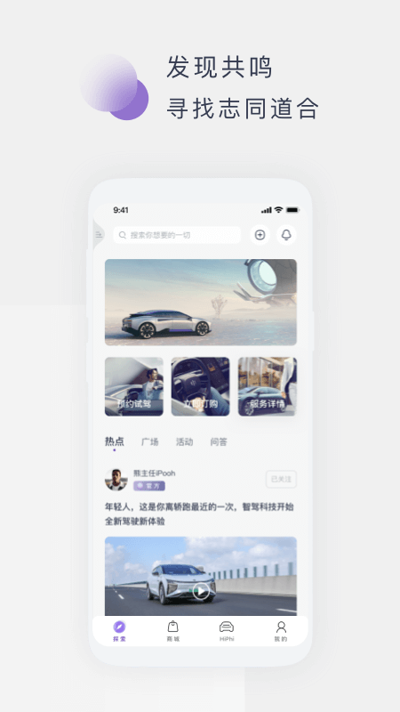app是专为该品牌的新能源汽车打造的手机客户端 高合HiPhiapp是专为汽车车主打造的一款智能服务平台,该软件以“科技引领新风尚”为主旨,为用户提供了全方位的车辆管理、在线报修、远程诊断等实用功能。这款app不仅可以帮助车主轻松实现远程操控,而且还可以实时查看车辆信息和行驶数据;它还能通过地图定位技术让车主随时掌握车辆位置,避免因找不到车而导致的意外事件发生和故障发生,非常方便好用。