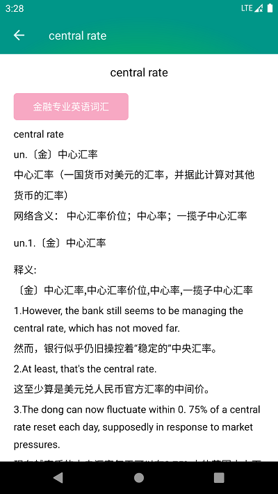 金融英语词汇大全包含丰富的金融英语词汇,帮助您快速的学习英语单词。本软件收录了最新的国际金融英语词汇内容,包括了各个学科的词汇资源、基础知识和常用句子等多种类型的内容供你选择练习;还有非常详细的释义以及例句提供给大家使用哦。