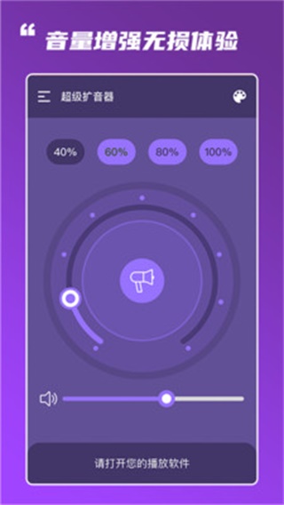 超级扩音器是款简单方便的手机音响调节app,通过开启我们的快速获取和播放。软件功能强大很是全面可以帮助我们进行各种声音的选择使用并根据自己的需要选择适合自己的风格来听歌或者是看视频等等都非常方便哦。想要试着下载试试本款工具的朋友不妨速速下载试试吧