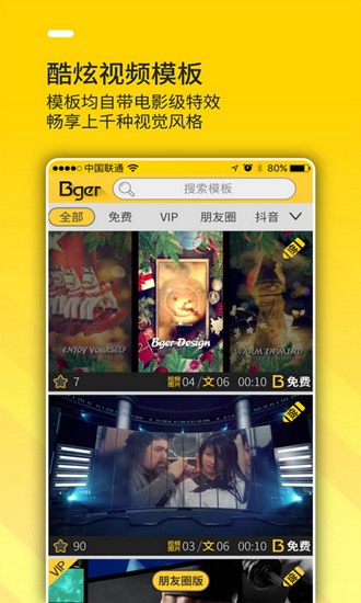 Bger视频制作是一款非常实用的视频剪辑软件,它能够为用户提供多种多样的特效、音乐和模板供您选择使用,无论是日常记录还是专业技能都能够得到满足。该应用支持一键转场效果功能,让您的视频更加炫酷和震撼,同时还提供了丰富多彩的贴纸与文字素材库可帮助您快速编辑自己的作品。
