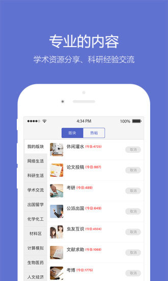 用户可以通过文字、图片、语音方式进行交流,获得丰富的学术文化生活体验;
