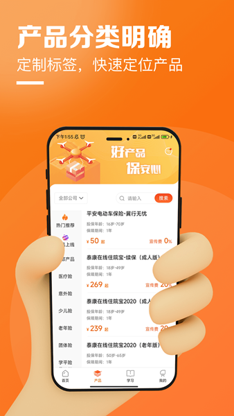 1、首先需要下载保险代理人APP,然后注册登录进入首页后我们可以看到有丰富的产品类型供你选择,