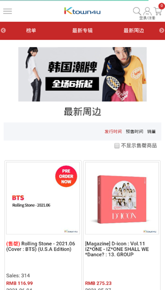 ktown4u是一款十分受欢迎的音乐购物平台,这里收录了海量的优质音乐歌曲和各种专辑等你来购买。软件内还设有多种明星艺人直播内容可以观看了解;还可以与同好进行线上交流讨论哦!喜欢的朋友快来下载使用吧。