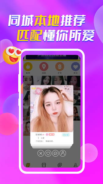 实时匹配:根据用户的兴趣爱好智能推荐适合的交友对象;