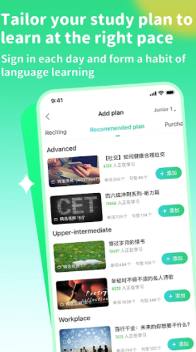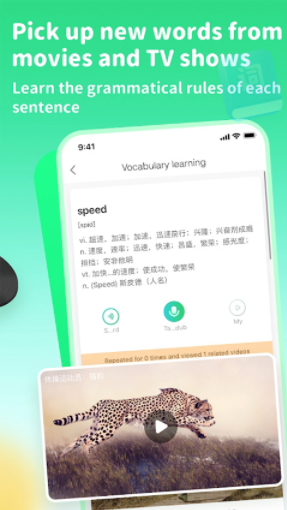 内含多种实用的工具:单句循环、随机播放、生动形象的卡通动画等等,还有各种好玩的游戏活动供你来体验哦!