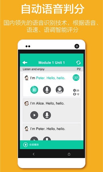 支持单词卡片式对话方式锻炼英语口语表达能力。