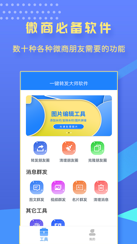 一键转发大师是款简单方便的手机微商营销推广神器,通过开启用户们可以快速获取我们的客户和商品。软件用法很简单适合我们进行使用并点击超多选择还能够轻松帮助我们完成自己的产品信息分享与宣传哦,喜欢的朋友不妨速速下载吧