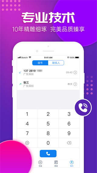 【电话】拨打电话,对方不需要安装虚拟电话,打电话完全真实,无需任何流量费用。