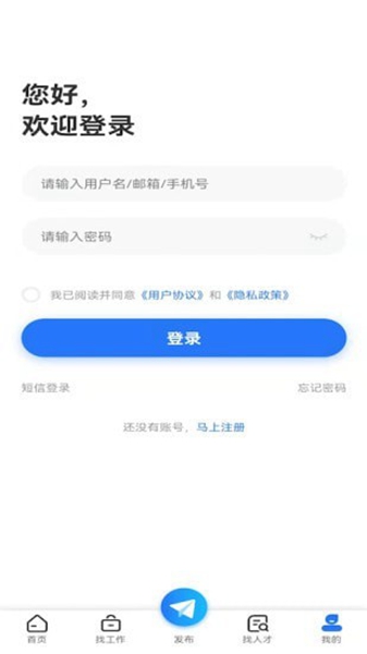 5.“下一步”板块分为:找人才、看企业、招人单位、聊工作、找人才、招聘会、找兼职等版块,分别对应不同的栏目供您挑选。(目前,此版块为招聘会),其中,有招工单位可在“我的”-“我的消息”里面找到已经接收到的反馈信息。