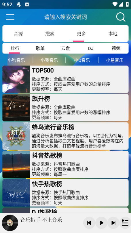 2、丰富多彩的内容分类:音乐扒手app不仅有流行、摇滚、古典、电子等等各类榜单信息展示,还涵盖了很多音乐题材,从经典老片到新世纪佳作,应有尽有。