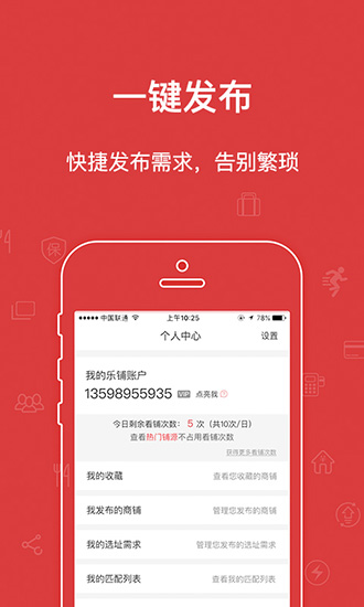乐铺是专为商户打造的一款店铺信息发布软件,用户可以在这里进行各种转让、出租等操作。这里能够帮助你快速转卖商品资源和出售二手物品!需要的用户不要错过哟!