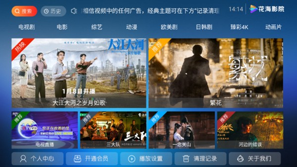 花海影院TV版是专为安卓用户准备的影视追剧app,软件内置了丰富的影视资源库,大家可以在这里轻松找到想看的影视内容。超清视频、最新电影和电视剧都有提供给您观看;并且所有影视都是免费观看!有需要的朋友快来下载看看吧~
