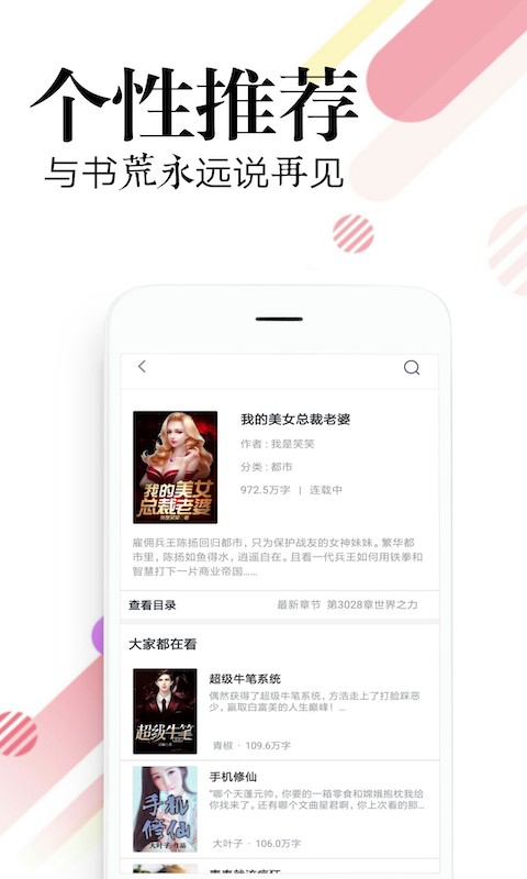 必读小说是国内领先的免费小说平台,汇聚了全本小说、电子书及各类小说类型,无论您想看什么类型的小说,都能在必读小说中找到满足您的口味;每天更新,让您随时畅读最新最热的网络小说;更有个性化设置选项,如字体大小以及翻页模式等等功能可实现自定义操作与定制专属用户的阅读习惯。